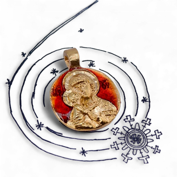 Медальон – знак нашей веры и любви Пресвятой Богородицы. Иисус сказал ученику: «Се, Матерь твоя!» И Мария услышала от Сына Своего слова доверия: «Жено, се сын Твой!» Она молится о нас пред Богом Спасителем – Иисусом Христом и всегда соучаствует тому, что происходит в нашей жизни.